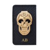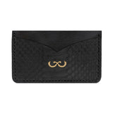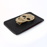 Hand made and hand stitched genuine snake skin card holder with front gold plated Rayal logo and a back mounted gold plated money clip